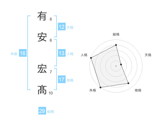 有安 宏髙さんを姓名の画数から五運を鑑定