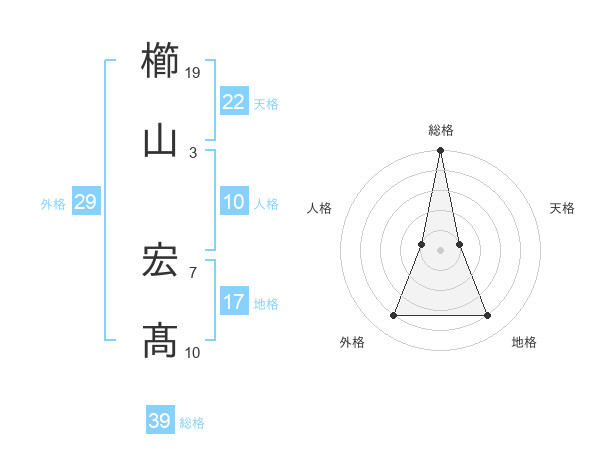櫛山 宏髙さんを姓名の画数から五運を鑑定