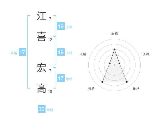 江喜 宏髙さんを姓名の画数から五運を鑑定