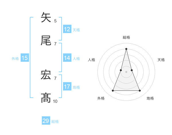 矢尾 宏髙さんの総格は29画の4点!