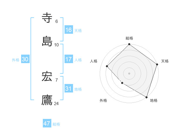 寺島 宏鷹さんを姓名の画数から五運を鑑定