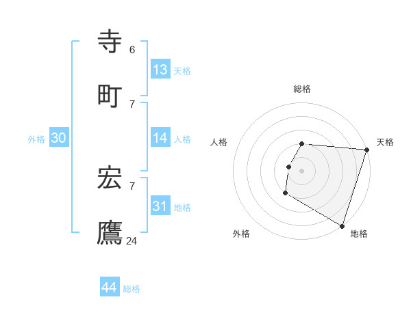 寺町 宏鷹さんを姓名の画数から五運を鑑定