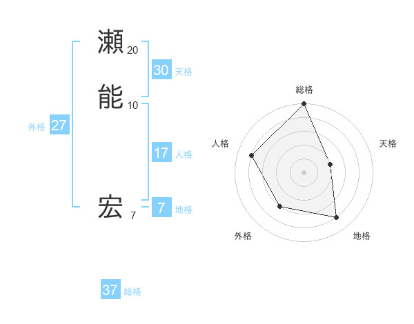 瀬能 宏さんを姓名の画数から五運を鑑定