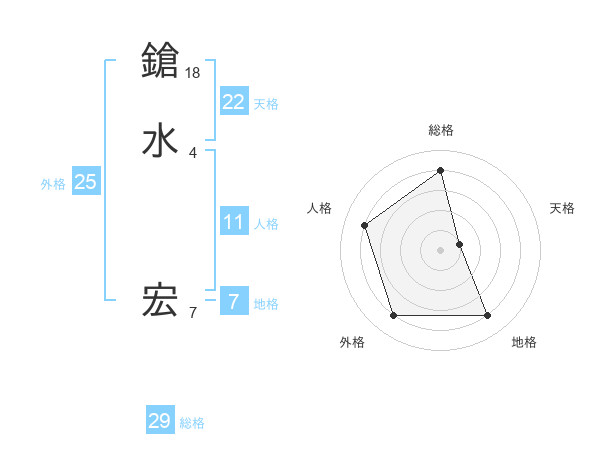 鎗水 宏さんを姓名の画数から五運を鑑定