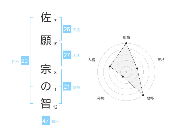 佐願 宗の智さんを姓名の画数から五運を鑑定
