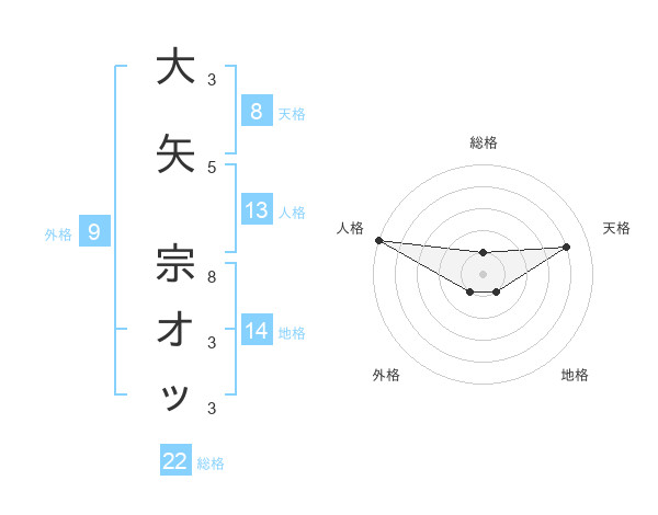 大矢 宗オッさんを姓名の画数から五運を鑑定