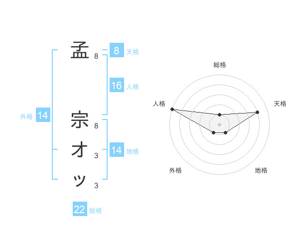 孟 宗オッさんの総格は22画の1点!