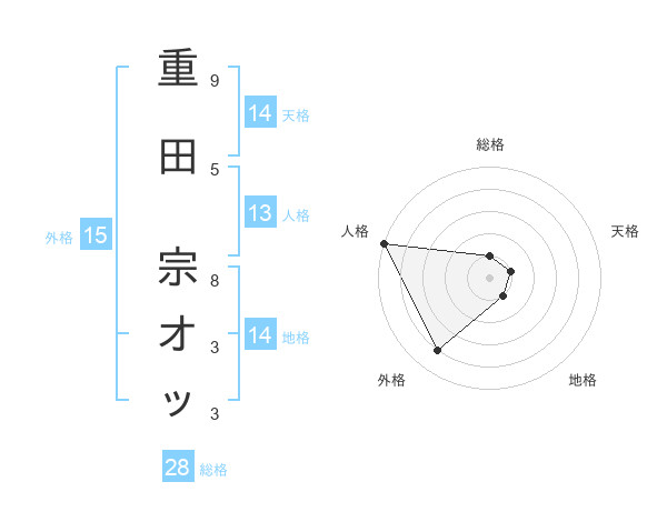 重田 宗オッさんを姓名の画数から五運を鑑定