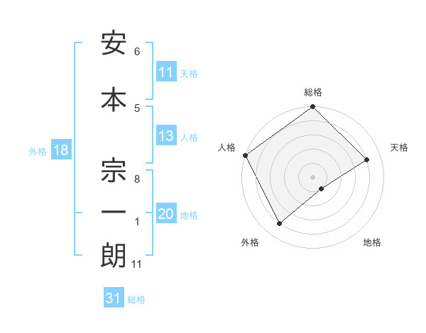 安本 宗一朗さんの人格は13画の5点!