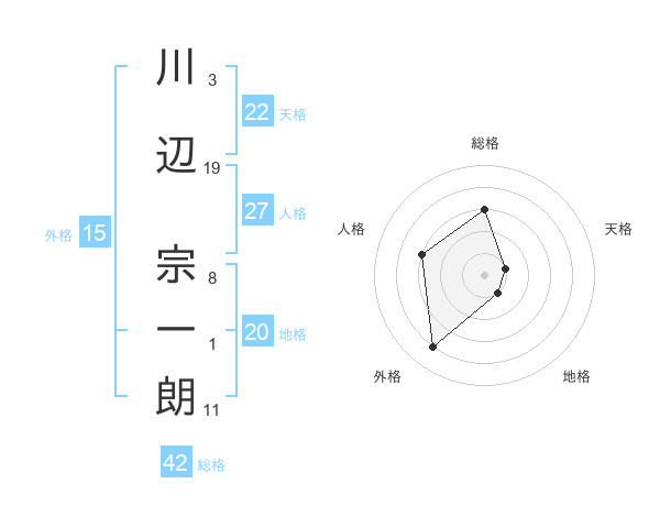 川辺 宗一朗さんを姓名の画数から五運を鑑定