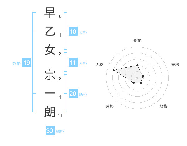 早乙女 宗一朗さんの総格は30画の2点!