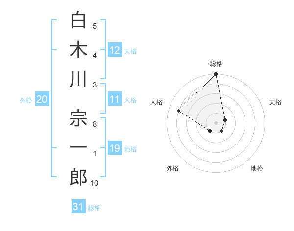 白木川 宗一郎さんの総格は31画の5点!