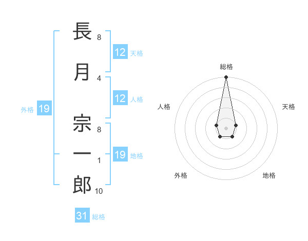 長月 宗一郎さんの総格は31画の5点