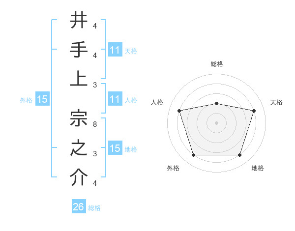 井手上 宗之介さんを姓名の画数から五運を鑑定