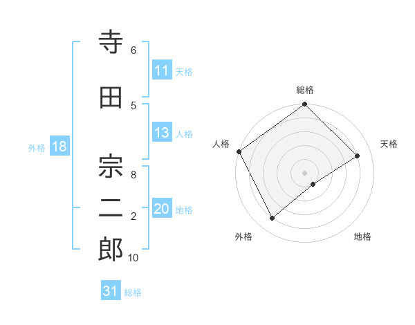 寺田 宗二郎さんを姓名の画数から五運を鑑定
