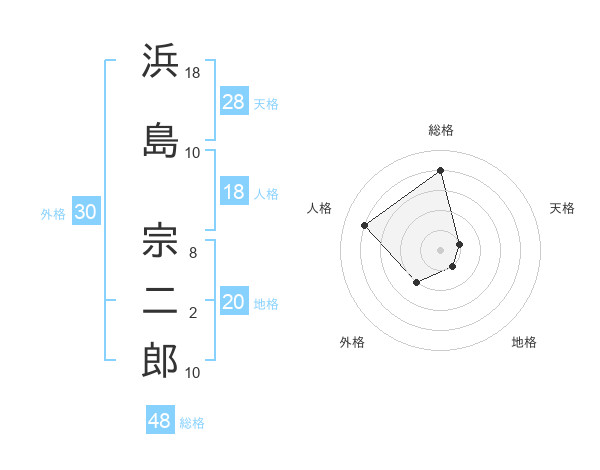 浜島 宗二郎さんを姓名の画数から五運を鑑定