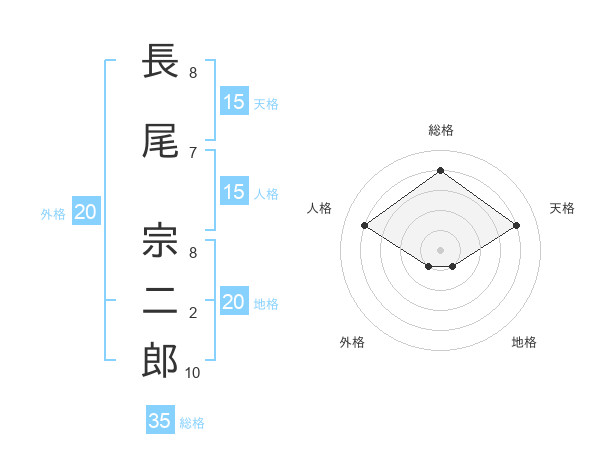 長尾 宗二郎さんの総格は35画の4点!