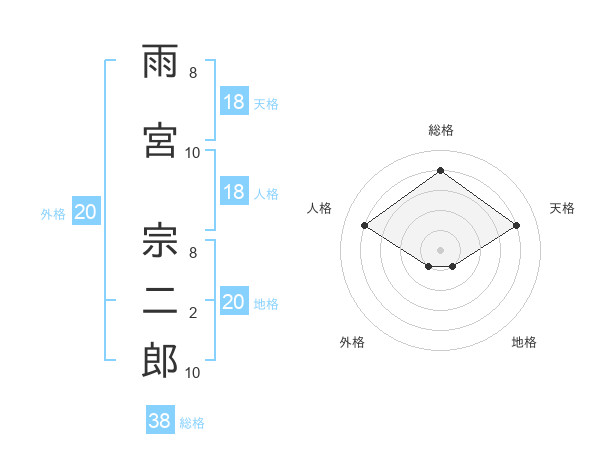 雨宮 宗二郎さんを姓名の画数から五運を鑑定