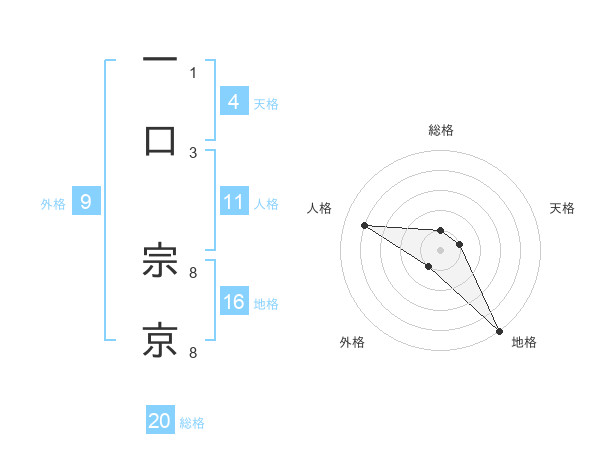 一口 宗京さんの総格は20画の1点!