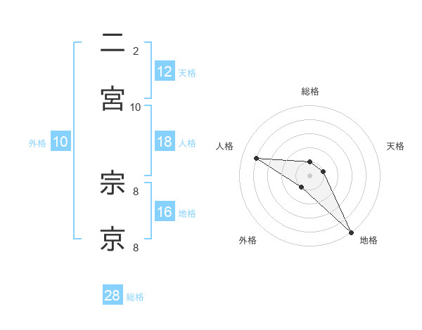 二宮 宗京さんを姓名の画数から五運を鑑定