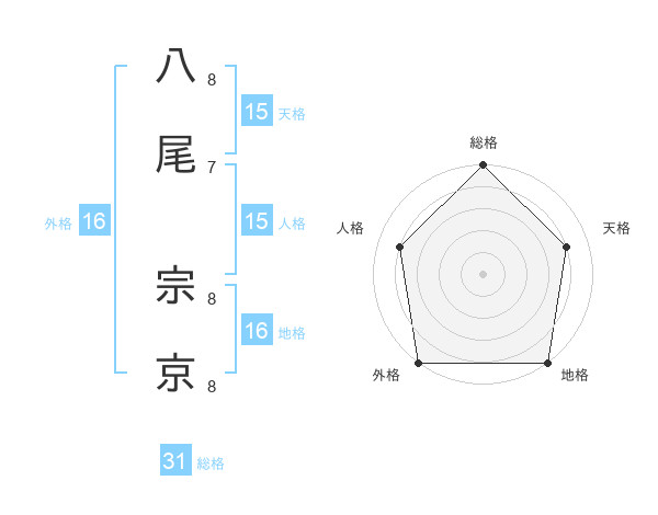八尾 宗京さんの総格は31画の5点!