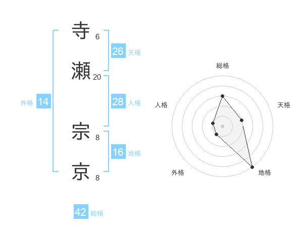 寺瀬 宗京さんの総格は42画の3点!