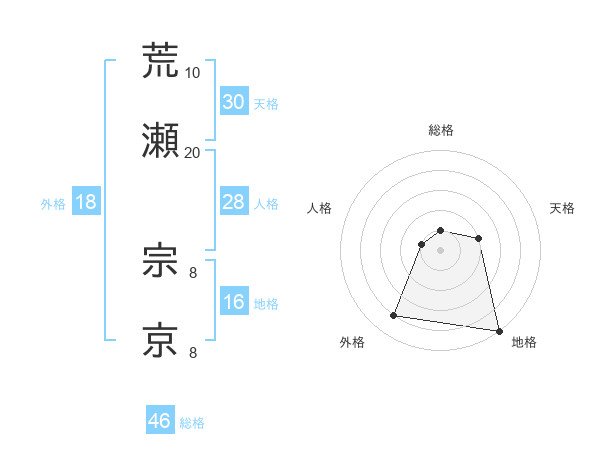 荒瀬 宗京さんの総格は46画の1点!