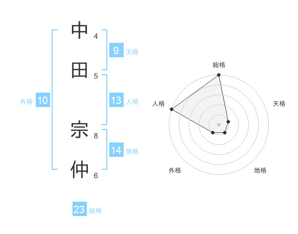 中田 宗仲さんを姓名の画数から五運を鑑定