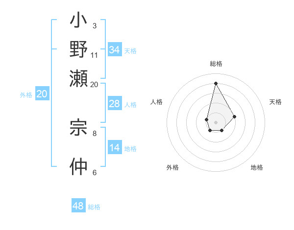 小野瀬 宗仲さんを姓名の画数から五運を鑑定