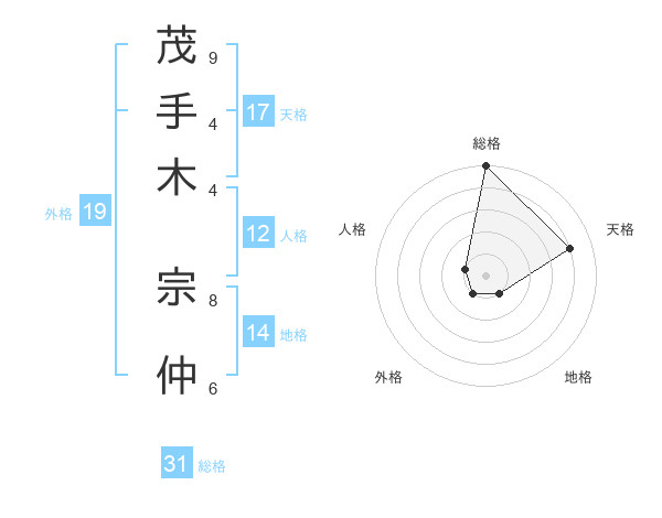 茂手木 宗仲さんを姓名の画数から五運を鑑定