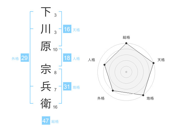 下川原 宗兵衛さんを姓名の画数から五運を鑑定
