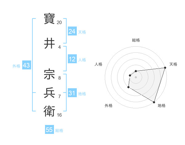 寶井 宗兵衛さんを姓名の画数から五運を鑑定