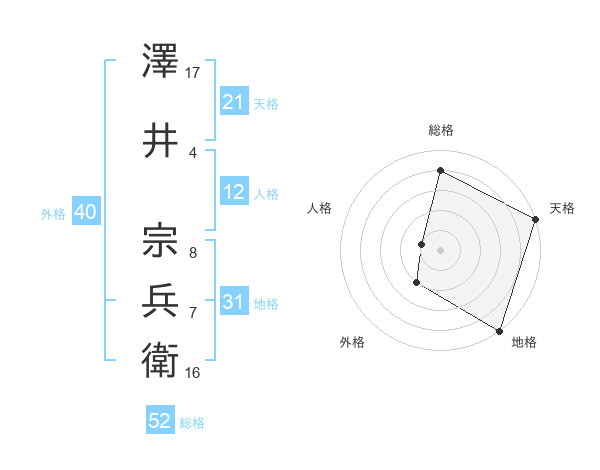 澤井 宗兵衛さんを姓名の画数から五運を鑑定