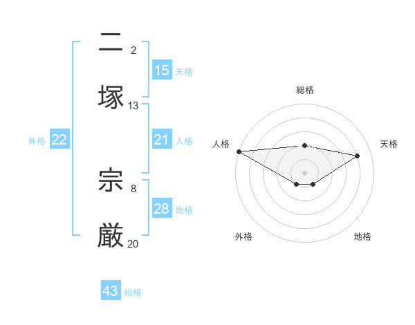 二塚 宗厳さんを姓名の画数から五運を鑑定