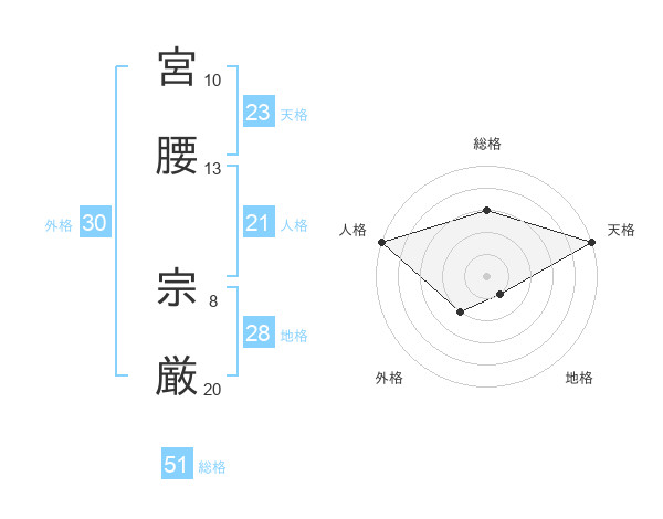 宮腰 宗厳さんの総格は51画の3点!