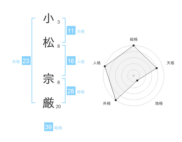 小松 宗厳さんを姓名の画数から五運を鑑定