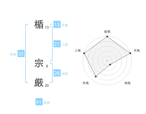 楯 宗厳さんの天格は13画の5点!