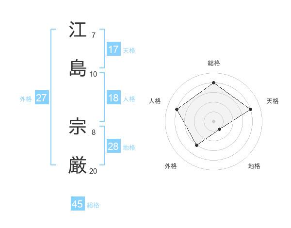 江島 宗厳さんの総格は45画の4点!