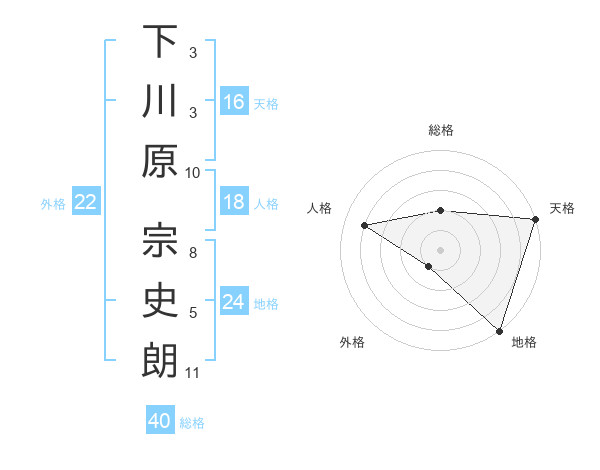 下川原 宗史朗さんを姓名の画数から五運を鑑定