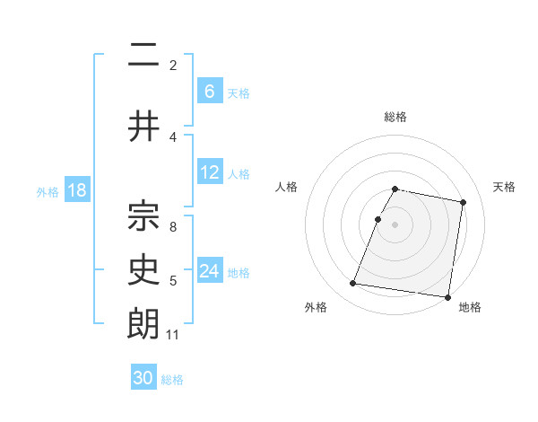 二井 宗史朗さんを姓名の画数から五運を鑑定