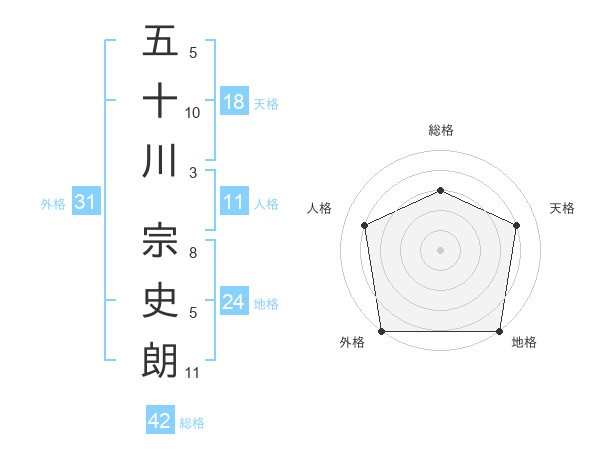 五十川 宗史朗さんを姓名の画数から五運を鑑定