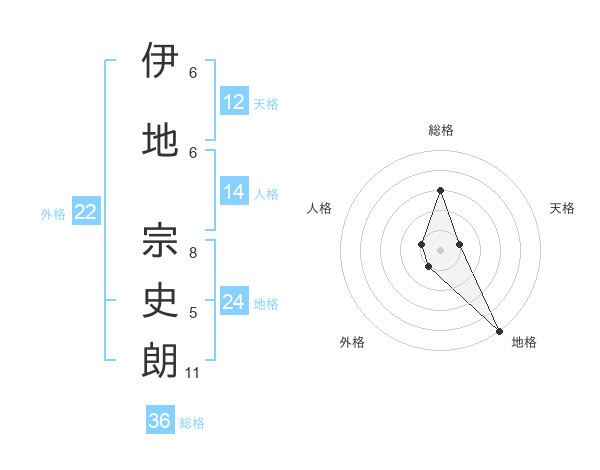 伊地 宗史朗さんを姓名の画数から五運を鑑定
