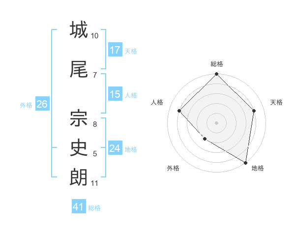 城尾 宗史朗さんを姓名の画数から五運を鑑定
