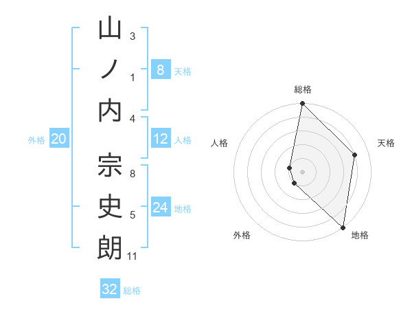 山ノ内 宗史朗さんを姓名の画数から五運を鑑定