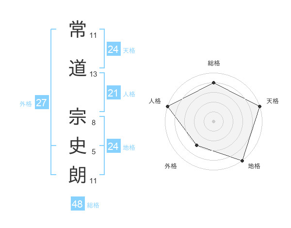 常道 宗史朗さんを姓名の画数から五運を鑑定