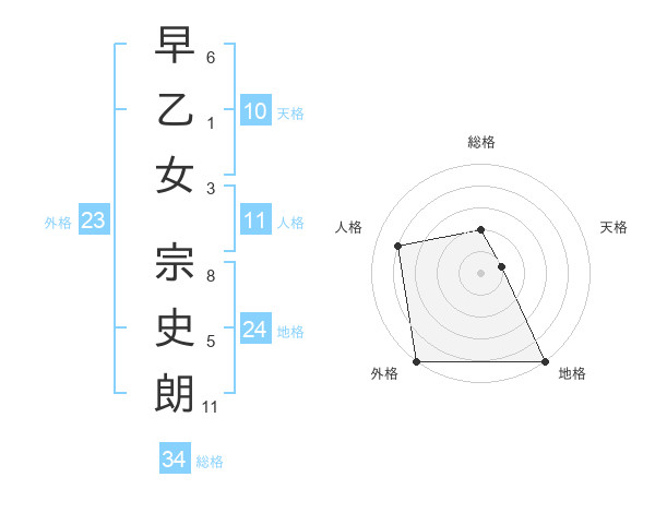 早乙女 宗史朗さんを姓名の画数から五運を鑑定