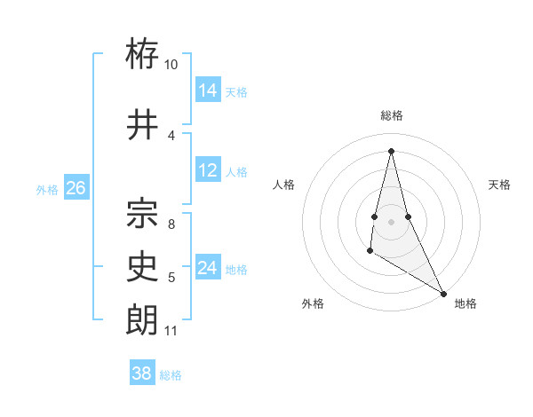 栫井 宗史朗さんの総格は38画の4点!