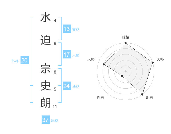 水迫 宗史朗さんを姓名の画数から五運を鑑定