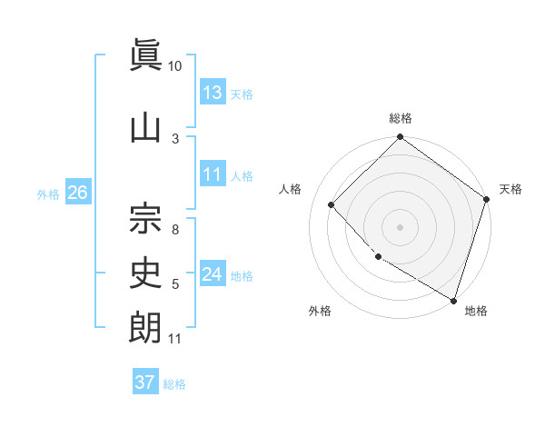眞山 宗史朗さんを姓名の画数から五運を鑑定