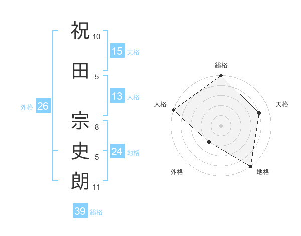 祝田 宗史朗さんを姓名の画数から五運を鑑定